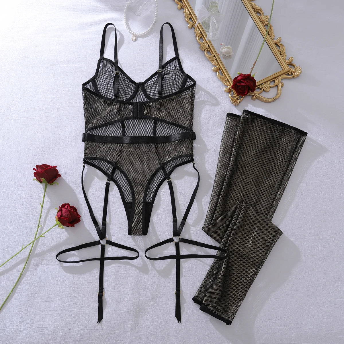 Deze lingerie is speciaal ontworpen om het vrouwelijke lichaam te omarmen. De stof vormt zich perfect naar jouw lichaam, accentueert taille, heupen en buste en voelt comfortabel aan — zelfs bij langdurig dragen. Sexy én draagbaar.